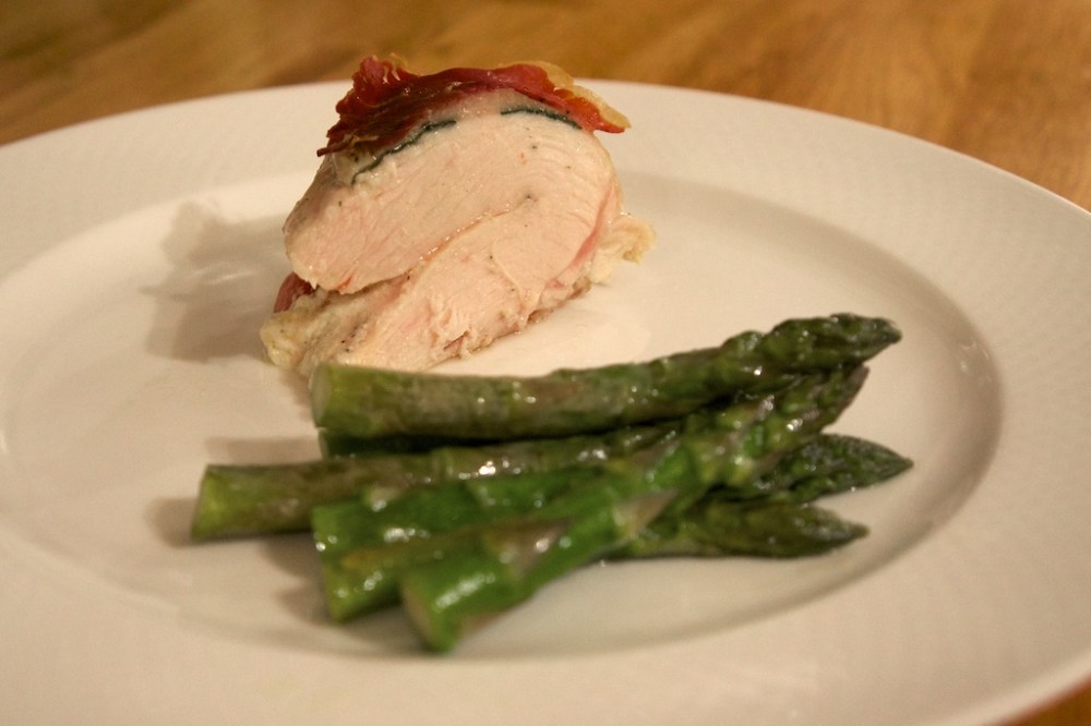 Jeg innrømmer det med en gang: Overskriften her lyver. Eller kanskje ikke, den forteller bare ikke hele sannheten. Vi snakker ikke om hvilken som helst kylling, hvilken som helst ost eller hvilken som helst skinke, men om kylling fra Stange (landkylling), italiensk ost (mascarpone) og spansk skinke (serranoskine). Ypperlige ingredienser hver for seg, strålende i denne kombinasjonen. Her er det bare å begynne å fundere på vinvalget…